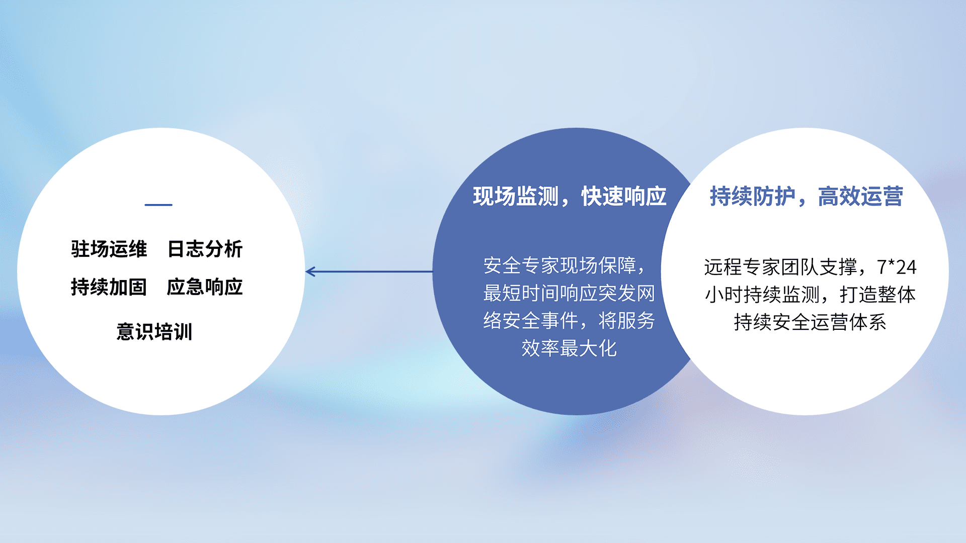 7X24小时持续监测安全事件,保持安全策略有效性,降低资产脆弱性风险,,,,精准拦截黑客攻击,,减少被黑客利用的机会,,第一时间遏制,,降低损失。。